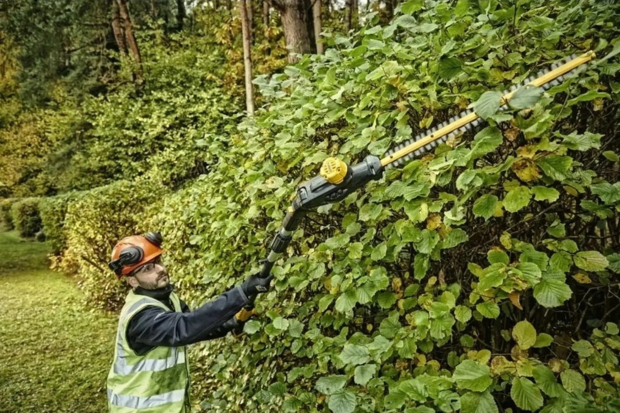 DeWalt DCMPH566N — это бесщеточный аккумуляторный кусторез со штангой из линейки 18V XR, предназначенный для стрижки высоких и труднодоступных живых изгородей без использования лестниц. Он известен своим большим вылетом и регулируемой головкой, обеспечивающей универсальность и эффективность.