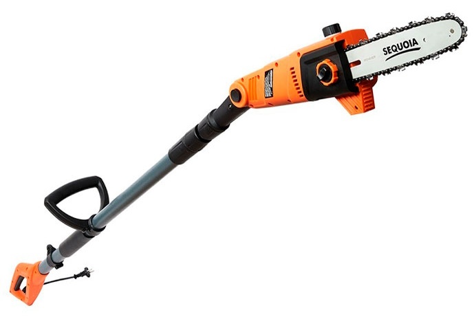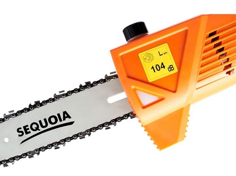 Высоторез электрический Sequoia SEPS0810 — двигатель мощностью в 0.8 кВт, скорость цепи 10.8 м/сек, и телескопическая штанга электрического высотореза с регулируемой длиной 201-295 сантиметра обеспечивают быструю и качественную работу. С помощью поворотного элемента, рабочую часть инструмента можно поворачивать под углом +/- 30 град, что является важным фактором при обрезке веток в труднодоступных местах. Также, высоторез оборудован системой автоматической смазки цепи — это поможет продлить срок ее эксплуатации. Шина длиной 25.4 см справится с ветками диаметром до 20 см.