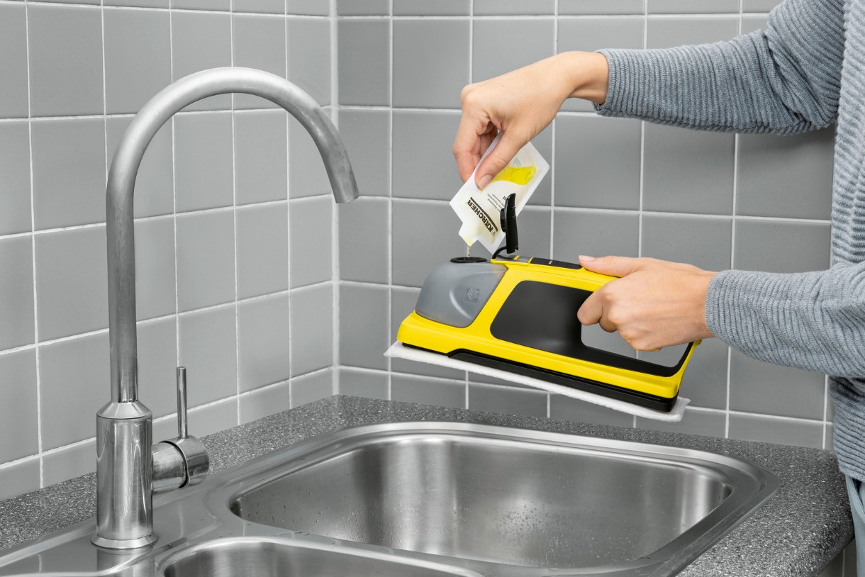 Новый вибропад KV 4 от Kärcher легко очищает гладкие поверхности, включая окна, зеркальные поверхности, стеклянные столы, плитку и многое другое. Беспроводной вибропад упрощает очистку благодаря вибрациям и электрической системе увлажнения. Грязь удаляется как по волшебству: просто проведите вибропадом по грязным поверхностям — оставляя трудности, связанные с чисткой в прошлом. Новое устройство имеет только два элемента управления, что облегчает его использование. Оно также компактное и не забирает много времени на подготовку к работе. Вы можете начать очистку, как только бачок заполнится концентратом для мойки окон и водой. Кроме того, салфетку для KV 4 можно стирать и использовать снова и снова. После завершения предварительной очистки вибропадом мы рекомендуем использовать оконный пылесос от Kärcher для удаления излишней влаги.
