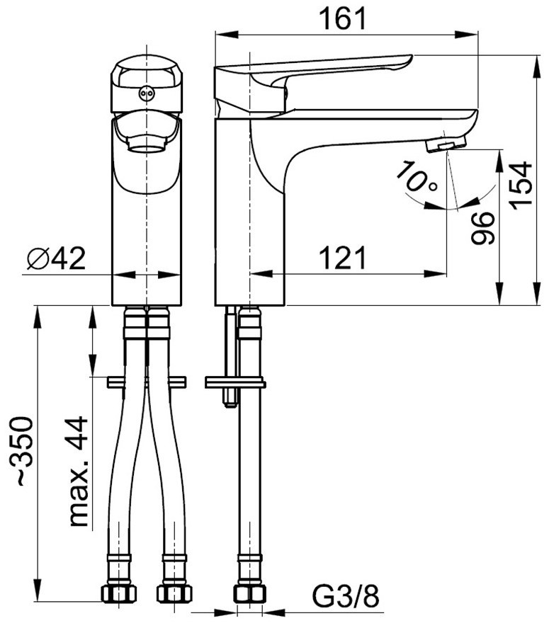 Высота излива96 мм