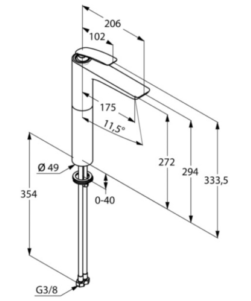Высота излива272 мм