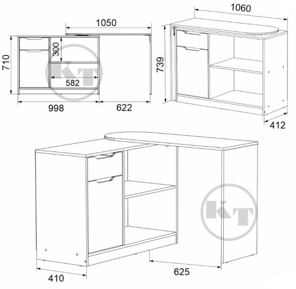 Характеристики Письменный стол Компанит Комод-стол 2 1060 Нимфея Альба