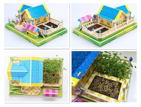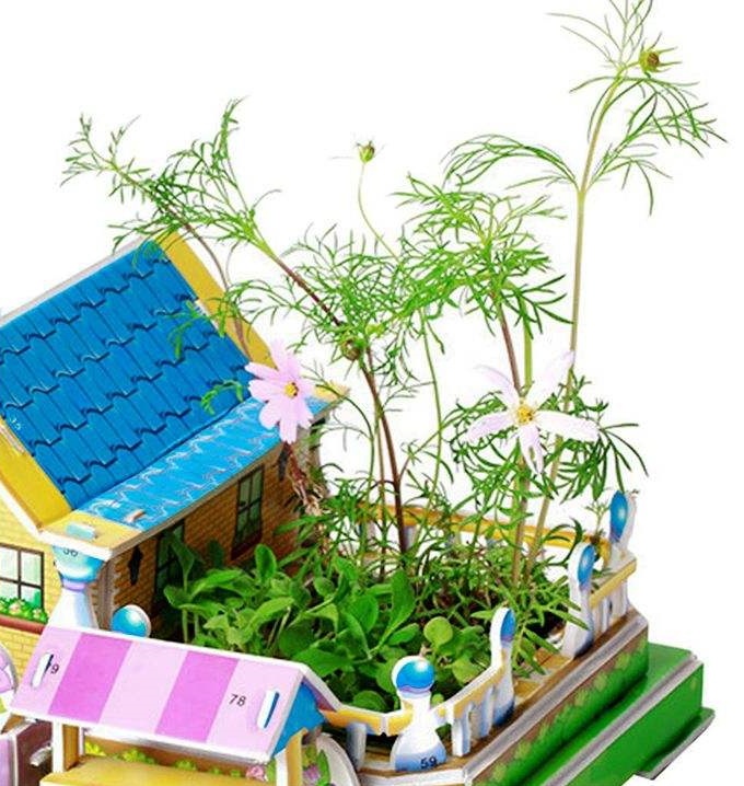 3Д-пазл «Стильная вилла» входит в серию пазлов «Юный садовод». Из деталей 3Д-пазла можно собрать красивую виллу с обустроенной дворовой территорией и беседкой рядом. В набор также входят семена для выращивания рядом с виллой красивой клумбы, а также оригинальная лейка для ухода за ней. По прошествии трёх недель рядом с виллой появится прекрасная клумба. Иллюстрированная инструкция подробно рассказывает, как просто и эффективно вырастить свой сад.