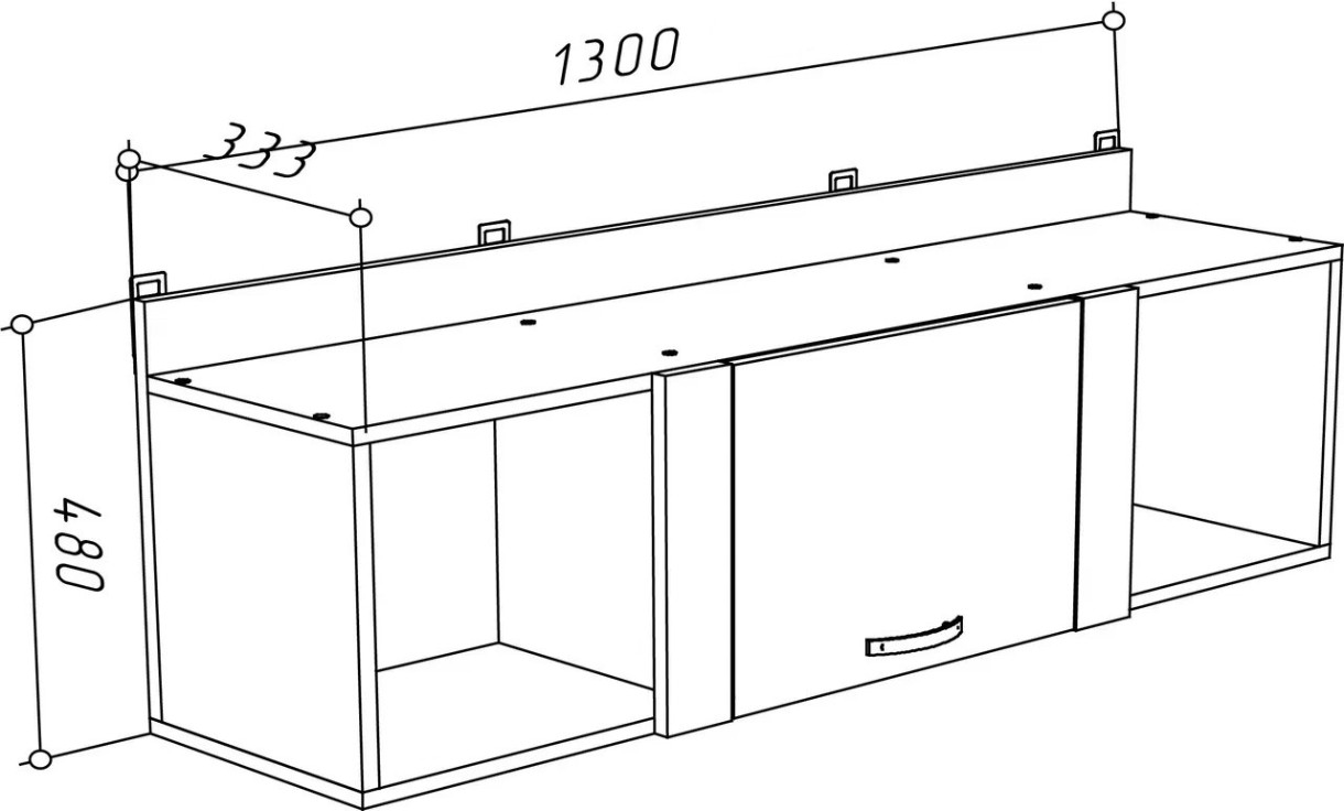 Навесная полка ML-Mobila Гамма 17 1300 МЛ Дуб Крафт Белый