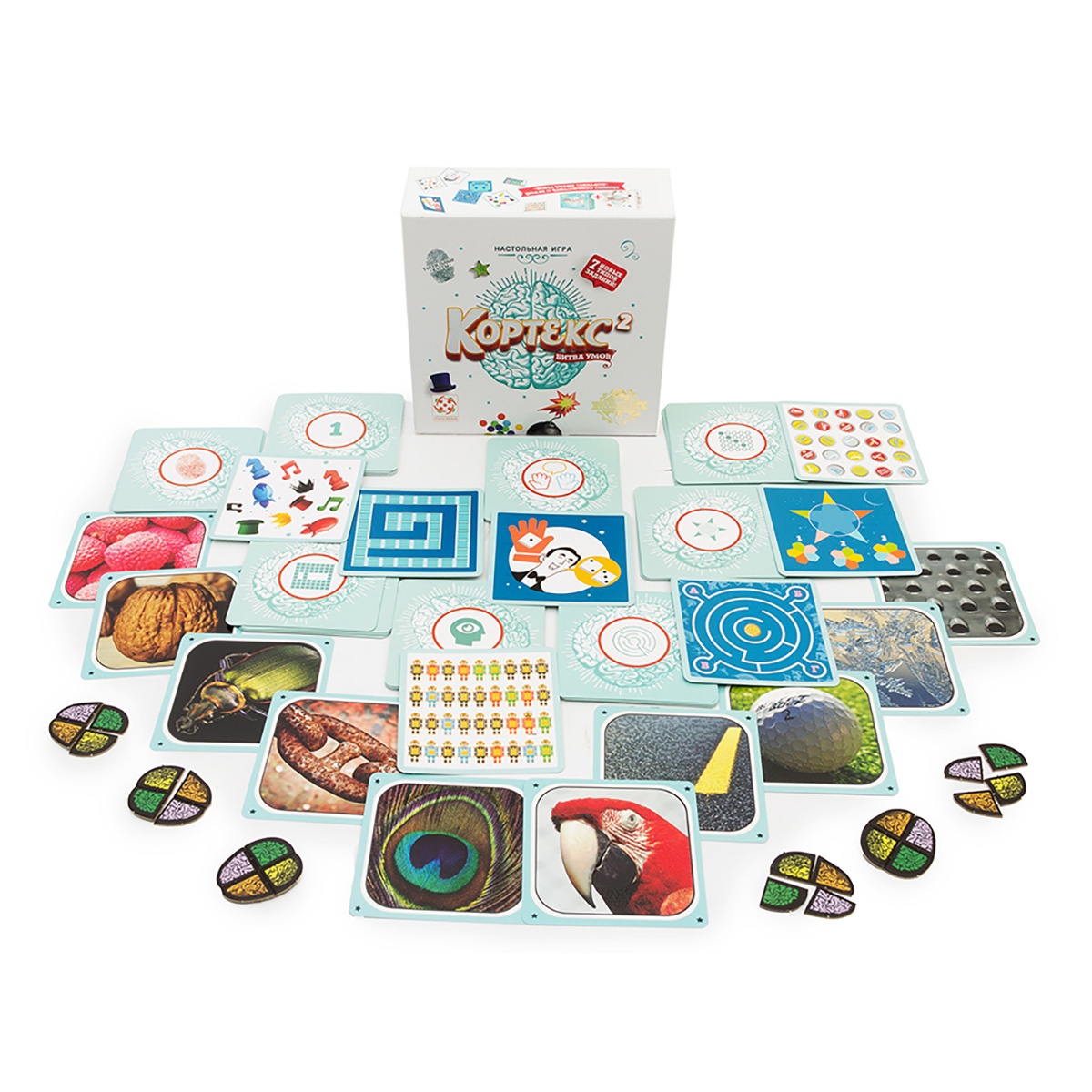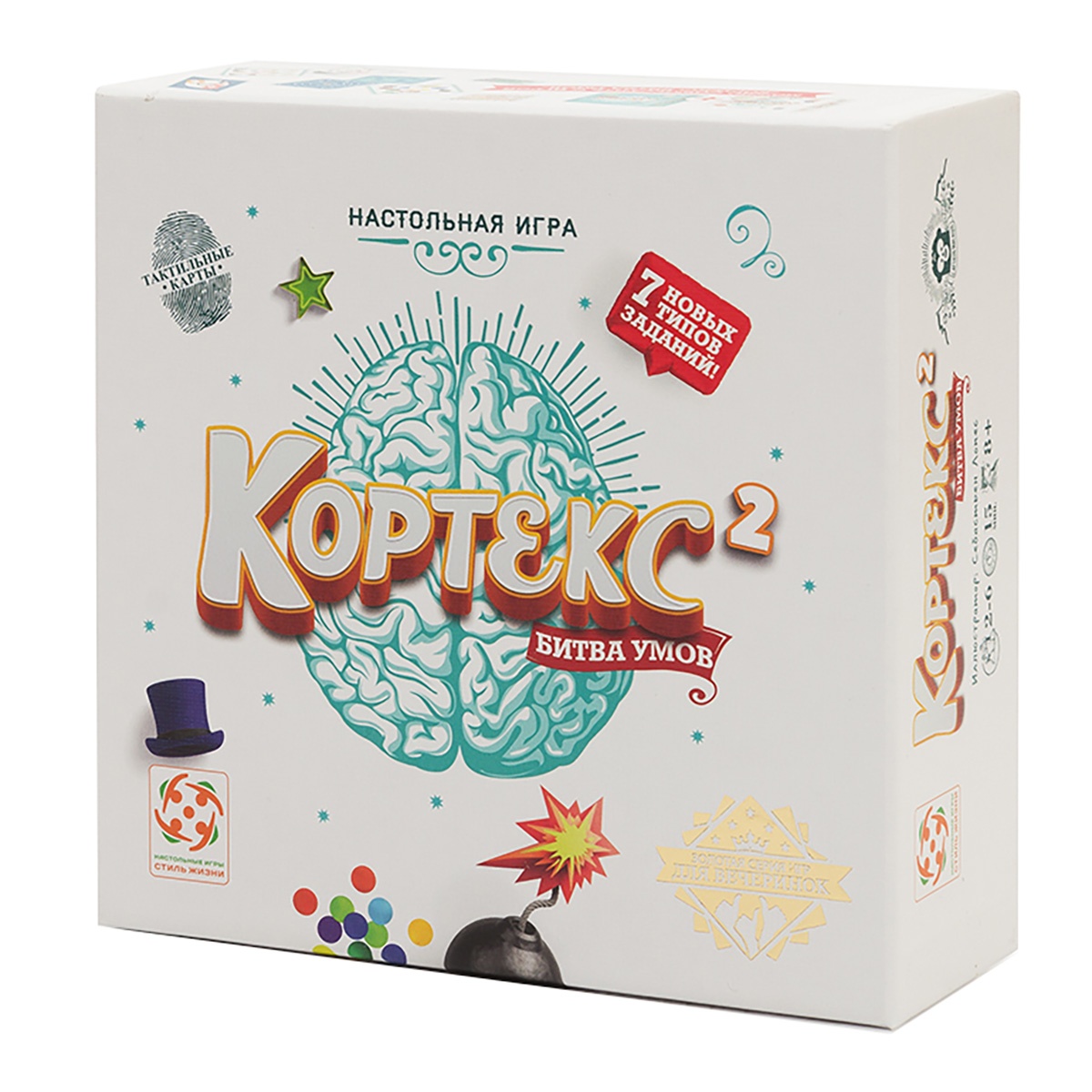 В игре Кортекс: Битва умов вас ждут 8 видов карт-заданий, включая 10 уникальных тактильных карт. Шевелите извилинами, тренируйте интеллект и веселитесь с друзьями!