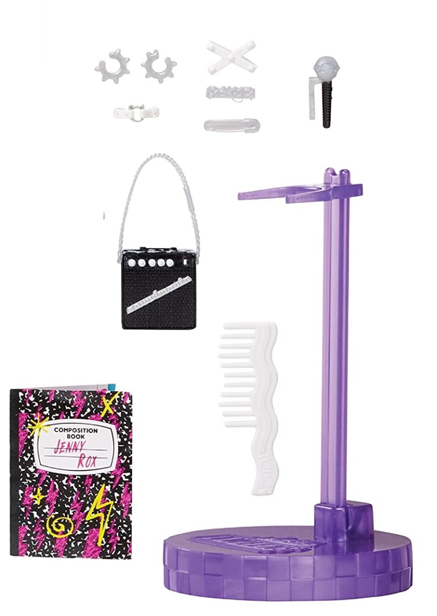 Стильный чокер на шею, черные ботинки на массивной подошве, серьги и микрофон завешают образ. Ярко-зеленые глаза, сиреневая помада на губах и брови в виде молний делают его еще более выразительным. Рост куклы 16,5 см. Тело суставное, что облегчает переодевание куклы и придает реалистичность позам куклы во время игры.