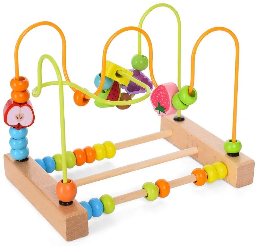 На деревянной основе прочно закреплены толстые изогнутые проволоки разных цветов, по которым движутся деревянные шарики. Краска не имеет запаха и абсолютно безопасна!