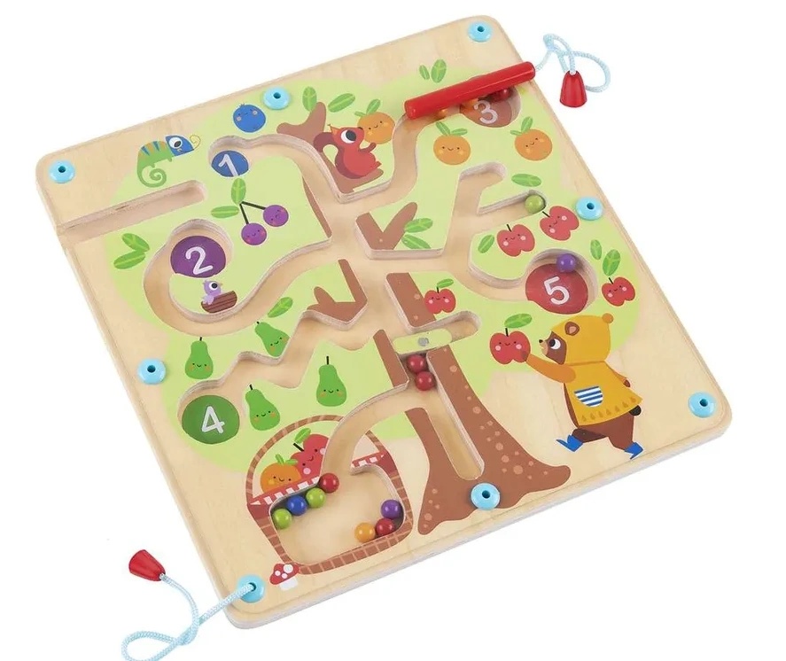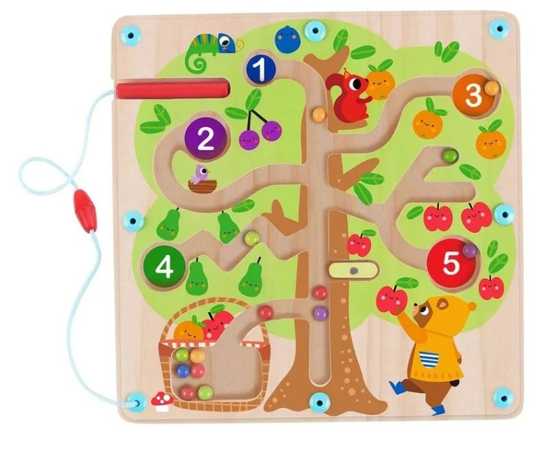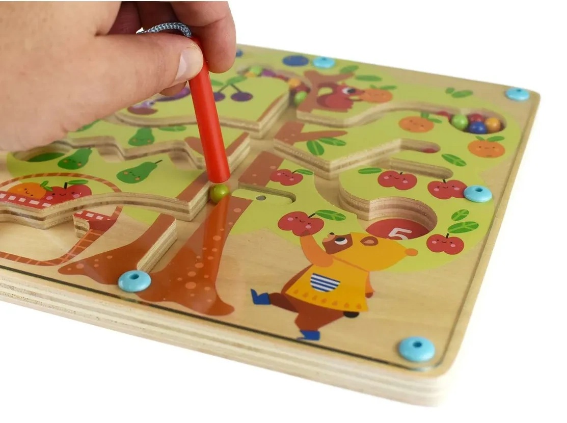 Деревянный магнитный лабиринт-дерево — это забавная игрушка, подходящая для детей старше 18 месяцев. Цель игры состоит в том, чтобы малыши прошли маршрут лабиринта, используя магнитный стилус, и помогли медведю собрать яблоки. Подобные игры способствуют развитию мелкой моторики и зрительно-моторной координации. Обучают малыша формам и цветам, развивают логику, пространственное восприятие, навыки решения проблем и дают ощущение собственных успехов и достижений. Игрушка изготовлена из высококачественных материалов, покрыта нетоксичной краской на водной основе и совершенно безопасна для малышей.