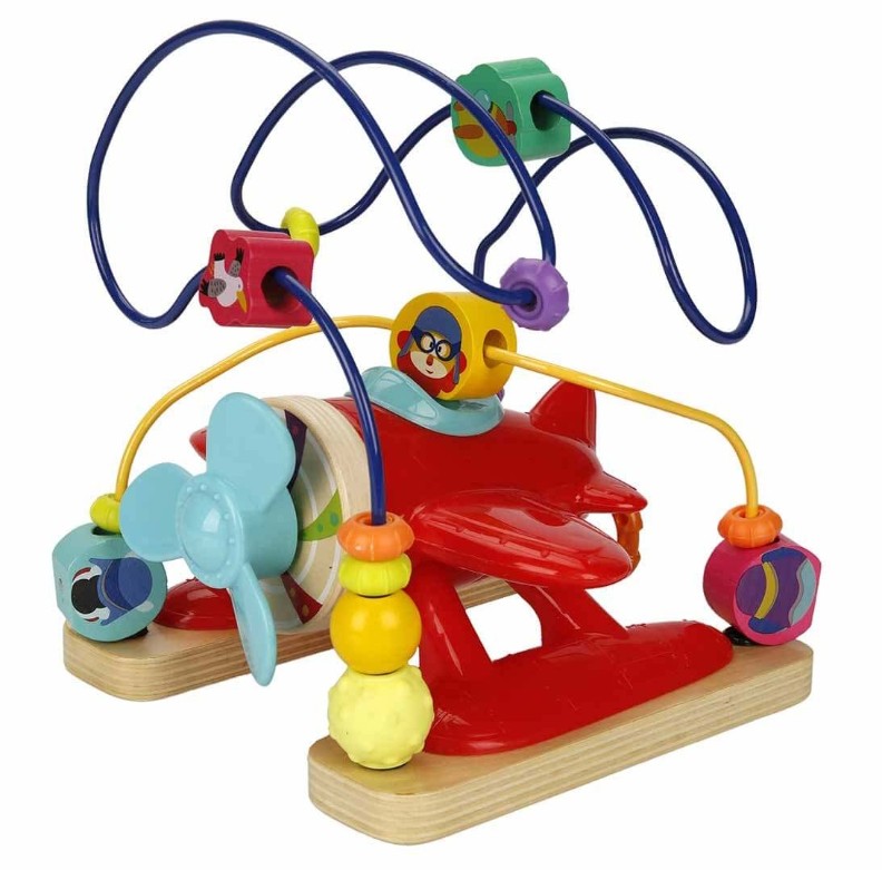 Благодаря форме самолета игрушка привлекает внимание детей и увлекает их во время развивающей игры.