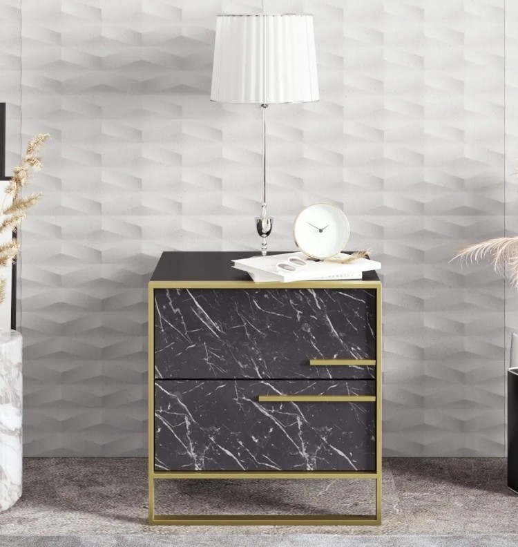 Прикроватная тумба Trendy Polka Black/Black Marble/Gold 50x51.8x38.5cm GTR005903