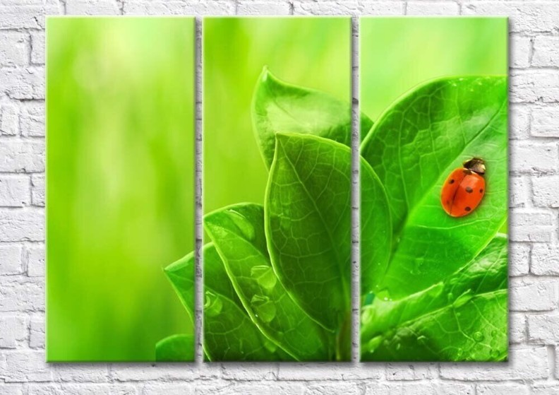 Картина Magic Color Ladybug on Green plant leaves (500096)