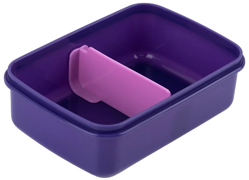 Компактный и вместительный, идеально помещается в рюкзак. Крышка плотно закрывается и фиксируется надёжными боковыми застёжками. Внутри он разделён на две части подвижной перегородкой, что предотвращает смешивание продуктов. В одном контейнере можно взять с собой две тарелки.
