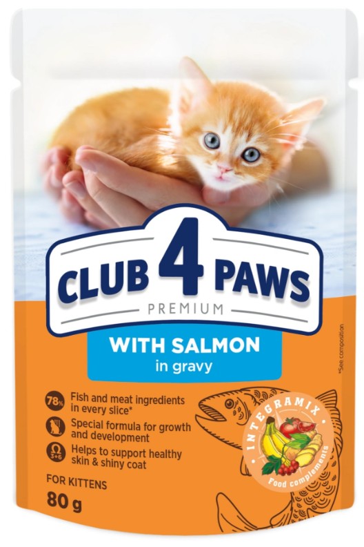 Влажный корм для кошек Club 4 Paws Kittens Salmon in Gravy 80g