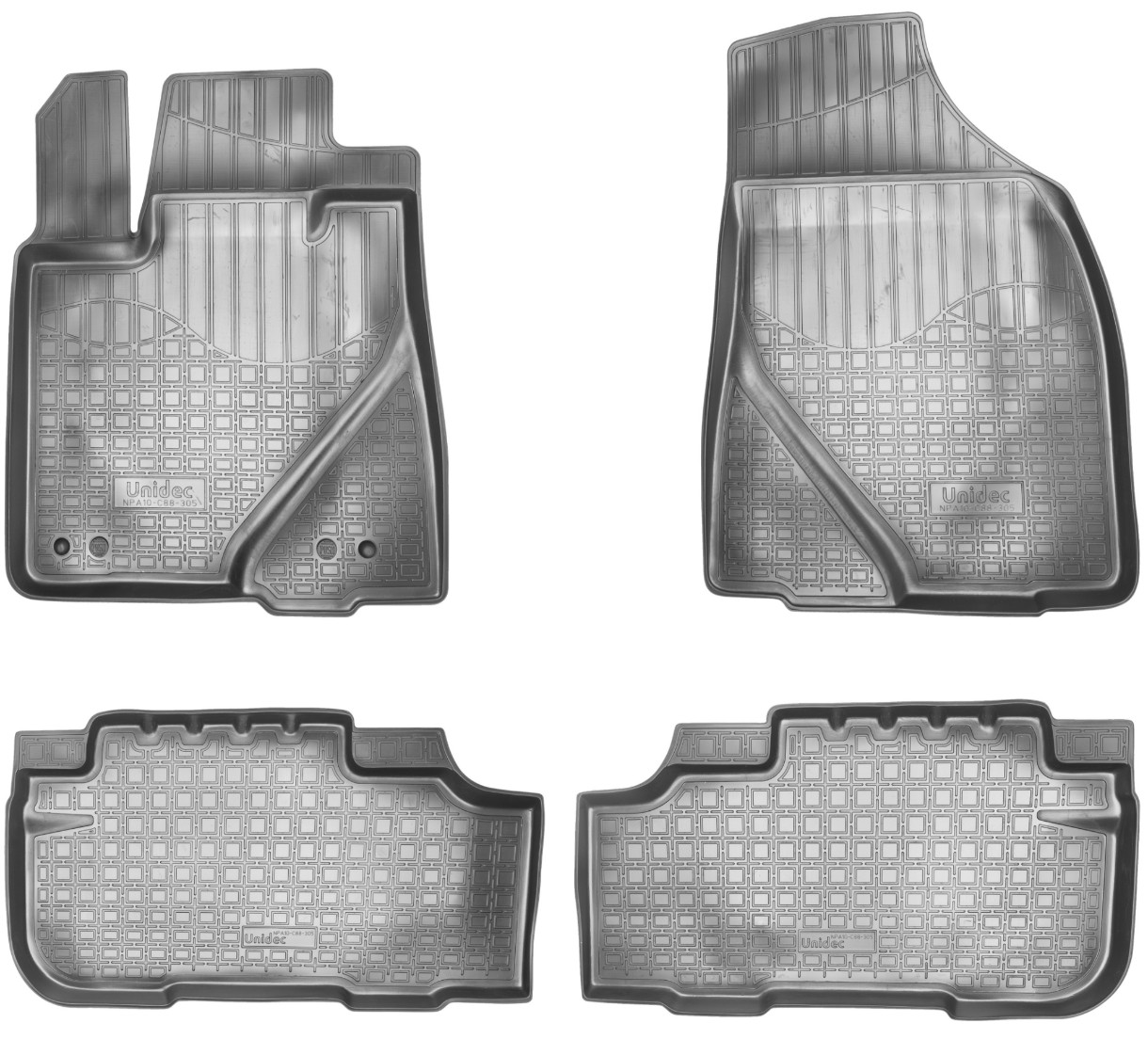 Автомобильные коврики в салон Норпласт/Unidec для Toyota Highlander (2014) выполнены из современного, экологически чистого полимерного материала (полиуретана/EPDM), обладающего пластичностью натурального каучука. Ковры имеют изящную форму, полностью повторяющую конфигурацию пола, и высокие бортики, которые эффективно защищают салон от загрязнения и влаги. Салонные коврики Норпласт/Unidec не твердеют на морозе и лишены резкого неприятного запаха.