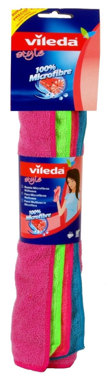 Салфетка Vileda Style изготовлена из микрофибры. Предназначена для уборки без применения детергентов. Благодаря электростатическому эффекту хорошо собирают пыль и грязь. Легко стираются.