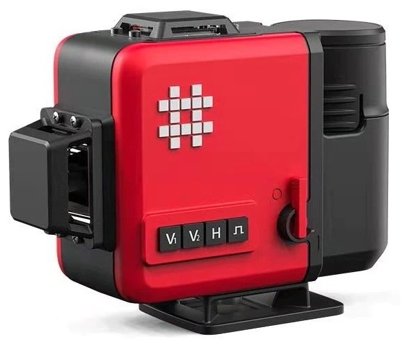 Лазерный уровень SHIJING 7859F строит 3 замкнутые плоскости (12 линий), из которых 2 вертикальных и 1 горизонтальная (верхняя), все по 360°. Горизонтальные и вертикальные линии пересекаются под углом 90° (образуются «кресты») как на стенах, так и на полу с потолком. Точка пересечения линий на потолке соответствует точке на полу и служит отвесом. Линии можно по отдельности включать/выключать. Точность уровня: ±2мм/10м. — у маятниковых лазерных нивелиров с разверсткой лучей по 360° большая точность уровня невозможна.
