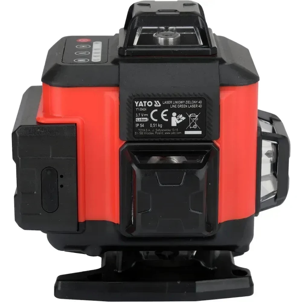Этот четырёхплоскостной 4D-лазер с электронным компенсатором и зелёным лучом YATO YT-30424 проецирует 16 линий, по четыре в каждой плоскости. Он позволяет одновременно выравнивать любую стену по горизонтали и вертикали в режиме реального времени. Лазерные диоды изготовлены по японской технологии, что обеспечивает отличную видимость внутри помещений и дальность действия до 30 метров.