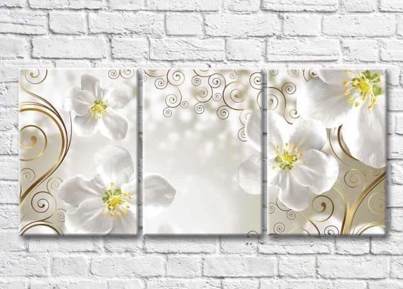 Картина Magic Color White flowers with Gold patterns on a Beige background (3565220)