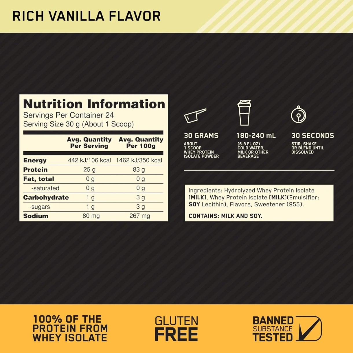 Протеин Optimum Nutrition Gold Standard 100% Isolate Rich Vanilla 720g