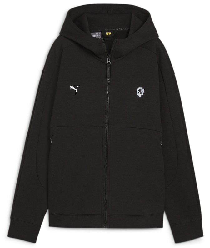 Толстовку выделяют вставки из текстурированного материала, премиальный брендинг, включающий логотип Scuderia Ferrari слева на груди, а также логотип Puma Cat. Предусмотрено также использование светоотражающих элементов для безопасности в темное время суток.