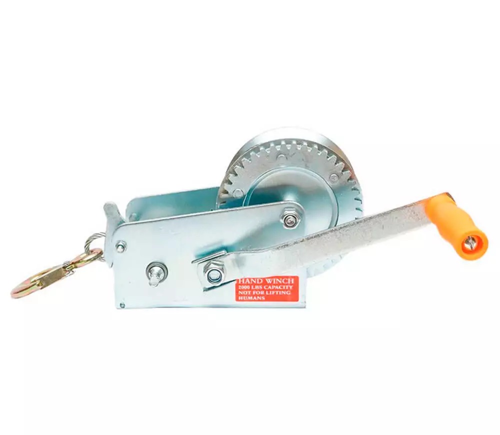 Ручная горизонтальная лебедка с храповым тормозом HOTECHE 680003 оснащается крюком, который крепится к канату через специальную петлю. Храповый механизм значительно упрощает подъем грузов. Использование лебедки допускается для перемещения предметов весом до 900 килограммов.
