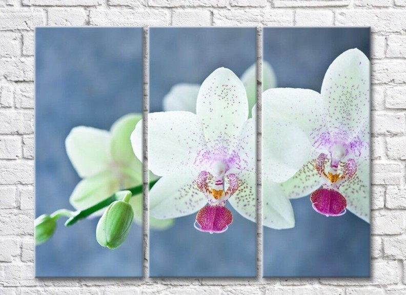 Картина Magic Color White orchid speckled branch on Gray/Blue background (500174)