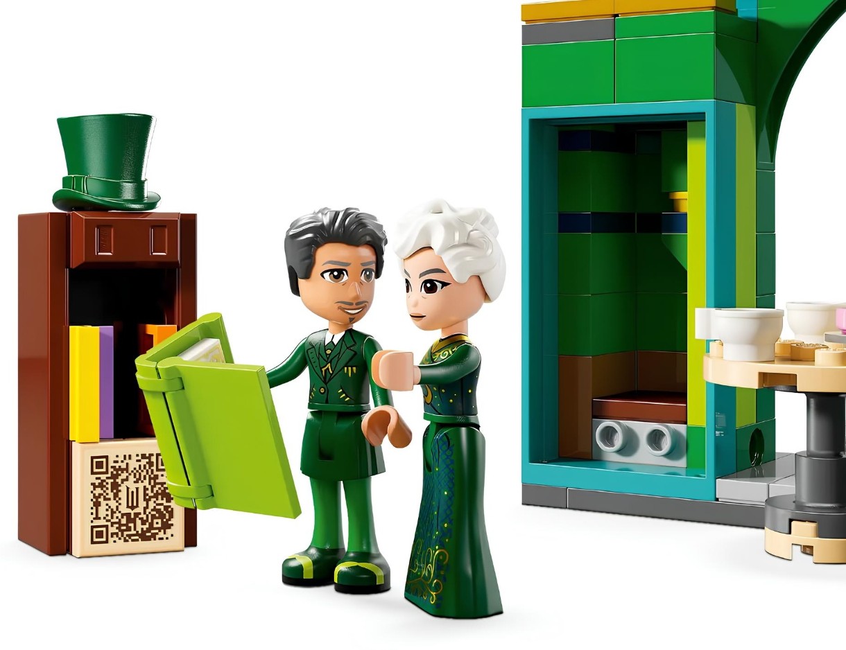 Эта фантастическая игрушка с 5 мини-куклами в комплекте позволяет детям разыгрывать моменты злой дружбы между фигурками мини-кукол Фиеро, Глинды и Эльфабы, когда они заходят в магазин косметики, покупают пирожные или заказывают напитки у продавца bicycle coffee. Чтобы вдохновиться игрой, дети могут отсканировать скрытый QR-код набора, чтобы получить доступ к уникальному онлайн-контенту LEGO Wicked.