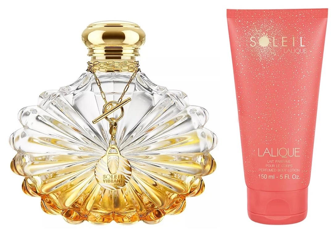 В набор входят: парфюмированная вода Lalique Soleil Vibrant 100 мл, лосьон для тела 150 мл.