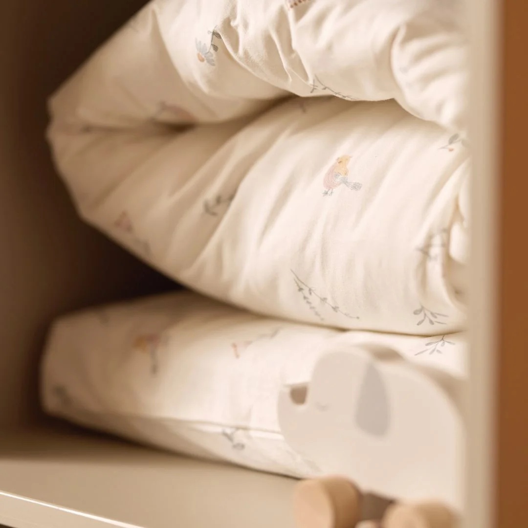 Постельное белье с рисунком «Милые птички» наполнено любовью и элегантностью, создавая чудесную атмосферу в любой детской комнате. Узор изображает восхитительную сцену с птицами, цветами и ветвями деревьев, переносящую вас прямо на лоно природы.