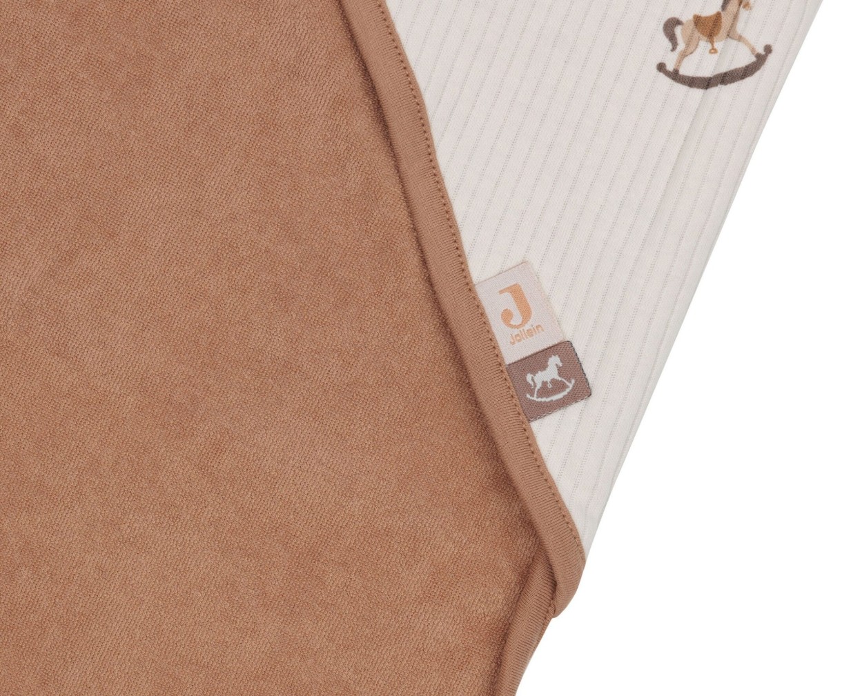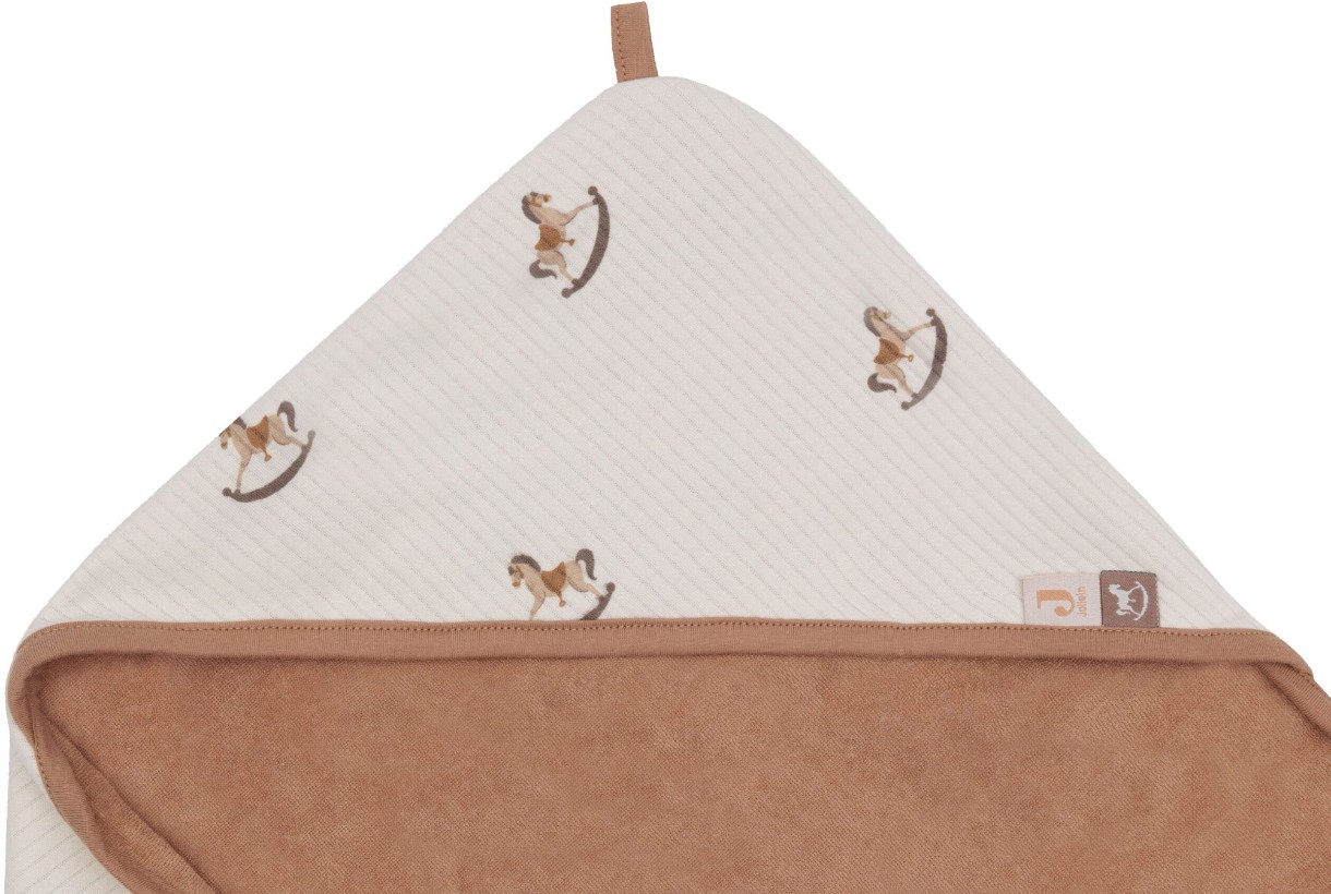 Полотенце с капюшоном Jollein Nostalgic Ride 75x75cm (534-836-67103) мягкое и приятное на ощупь. Оно изготовлено из 100% хлопка, который хорошо впитывает влагу. После купания полотенце быстро высушивает кожу ребёнка. Капюшон защищает голову и сохраняет тепло. Дизайн с деревянными лошадками выглядит красиво и подходит детям. Материал нежный и безопасный для чувствительной кожи. Подходит для использования дома, в бассейне или на пляже.
