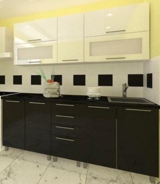 Кухонный гарнитур Bafimob Lena (High Gloss) 2.0m Top Black/Beige