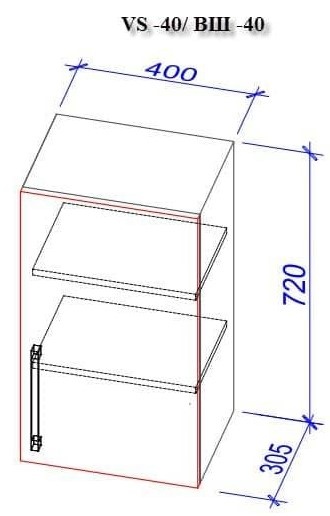 — Шкаф верхний ВШ-40 (1шт.): 40×30.5×72 см