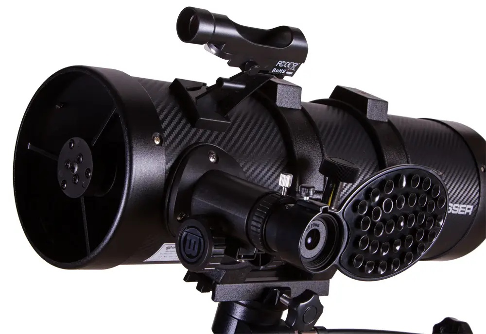 LED Red Dot видоискатель с точечной наводкой заметно облегчает наведение прибора на интересующий объект, а экваториальная монтировка телескопа с механизмами тонких движений позволит легко совершать наблюдения за суточным движением объектов по небосклону. Линза Барлоу призвана, при необходимости, утроить кратность телескопа.