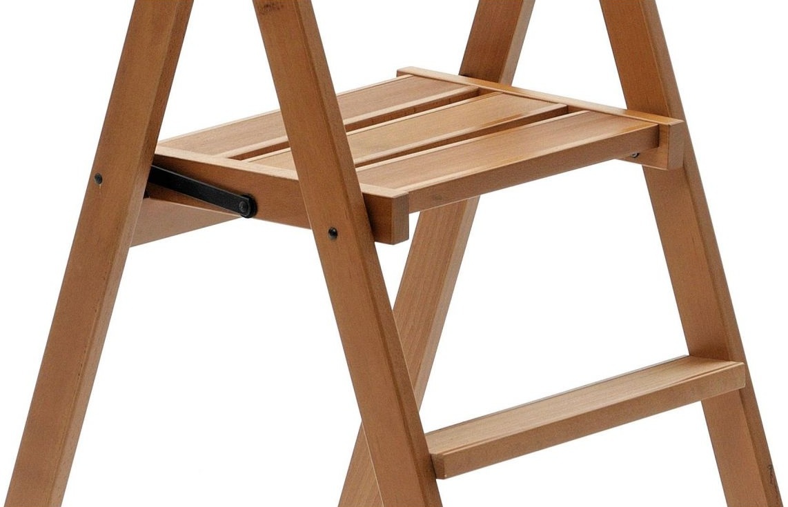 Складная лестница Arredamenti Kimora 2 Cherry Tree с 2 противоскользящими ступенями полностью выполнена из цельного бука, окрашенного в цвет вишни, и оснащена резиновыми накладками на ножках для защиты пола. Конструкция прочная и безопасная, максимальная грузоподъёмность составляет 100 кг, ступени из дерева оснащены системой против скольжения. Высота верхней ступени составляет 40 см, лестница легко складывается и в сложенном виде занимает всего 10 см, устойчиво стоя на поверхности. Продукт протестирован TÜV Rheinland Italy, поставляется полностью собранным. Оригинальное изделие Made in Italy, эксклюзивно от ARREDAMENTI ITALIA GROUP S.R.L., сочетает прочность, удобство и стильный дизайн.
