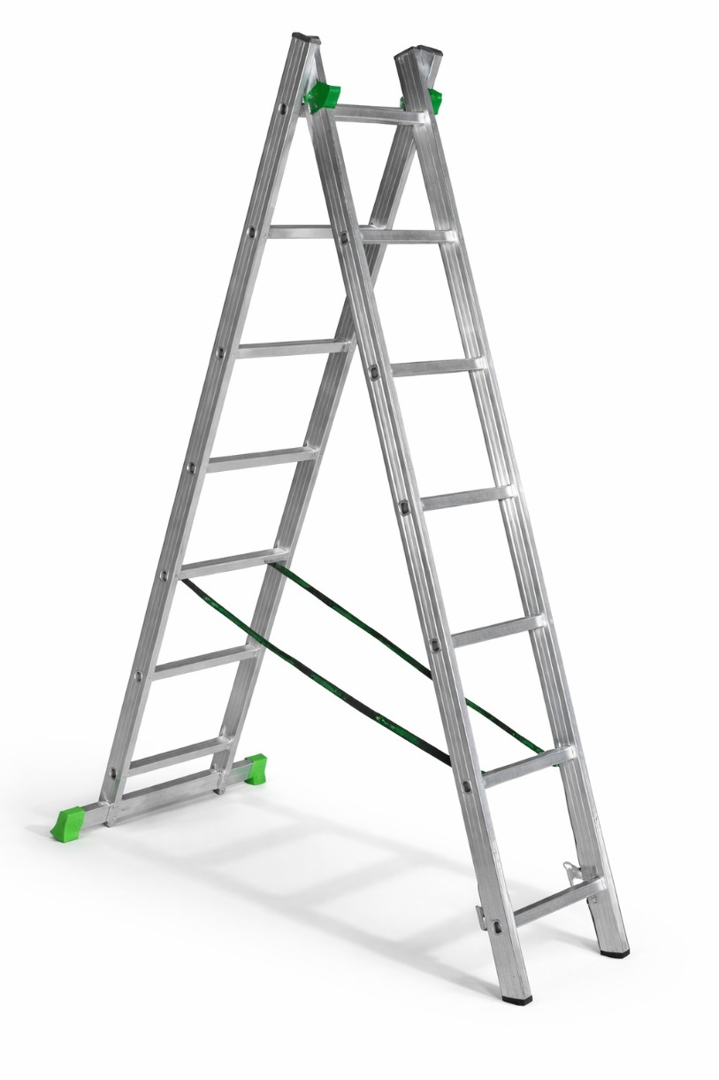 Универсальная двухсекционная алюминиевая лестница-стремянка Tarko (2х9 ступеней) сочетает в себе легкость конструкции и высокую прочность для выполнения бытовых и профессиональных задач. Благодаря трансформируемому механизму, модель может использоваться как устойчивая стремянка или как длинная приставная лестница с максимальным вылетом. Рифленые ступени и противоскользящие опоры гарантируют безопасность и стабильность во время работы на высоте.