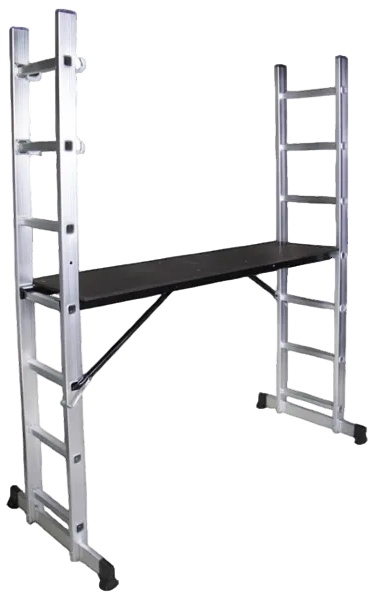 Лестница типа строительных лесов TechnoWorker 2×7 DLSL101-7 представляет собой прочную и надёжную алюминиевую конструкцию, предназначенную для безопасной работы на высоте в строительстве, монтаже и ремонте. Конструкция включает две секции по семь ступеней каждая, что позволяет использовать лестницу как отдельные приставные конструкции или совместно для создания устойчивой рабочей платформы. Широкие рифлёные ступени предотвращают скольжение, а прочный каркас гарантирует долговечность и устойчивость при эксплуатации. Противоскользящие опорные наконечники обеспечивают стабильность на различных поверхностях, а лёгкая и складная конструкция облегчает транспортировку и хранение. Максимальная нагрузка составляет 150 кг, что позволяет безопасно работать с инструментами и оборудованием.