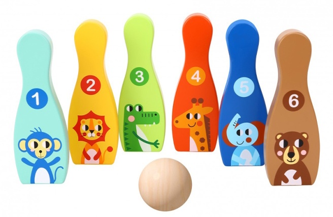 Игра Боулинг от Tooky Toy - идеальное времяпрепровождение для детей. Набор состоит из 6 деревянных фигурок и шара. Размеры фигурок - 15,5х5,5х2 см, диаметр шара - 5,5 см. Уровень игры можно повышать отодвигая фигурки дальше от участников. Подходит для игры в помещении и на улице. Можно играть как одному, так и в компании. Подобные игры развивают зрительно-моторную координацию, мануальные навыки, ловкость, концентрацию, терпение. Для детей от 3 лет.