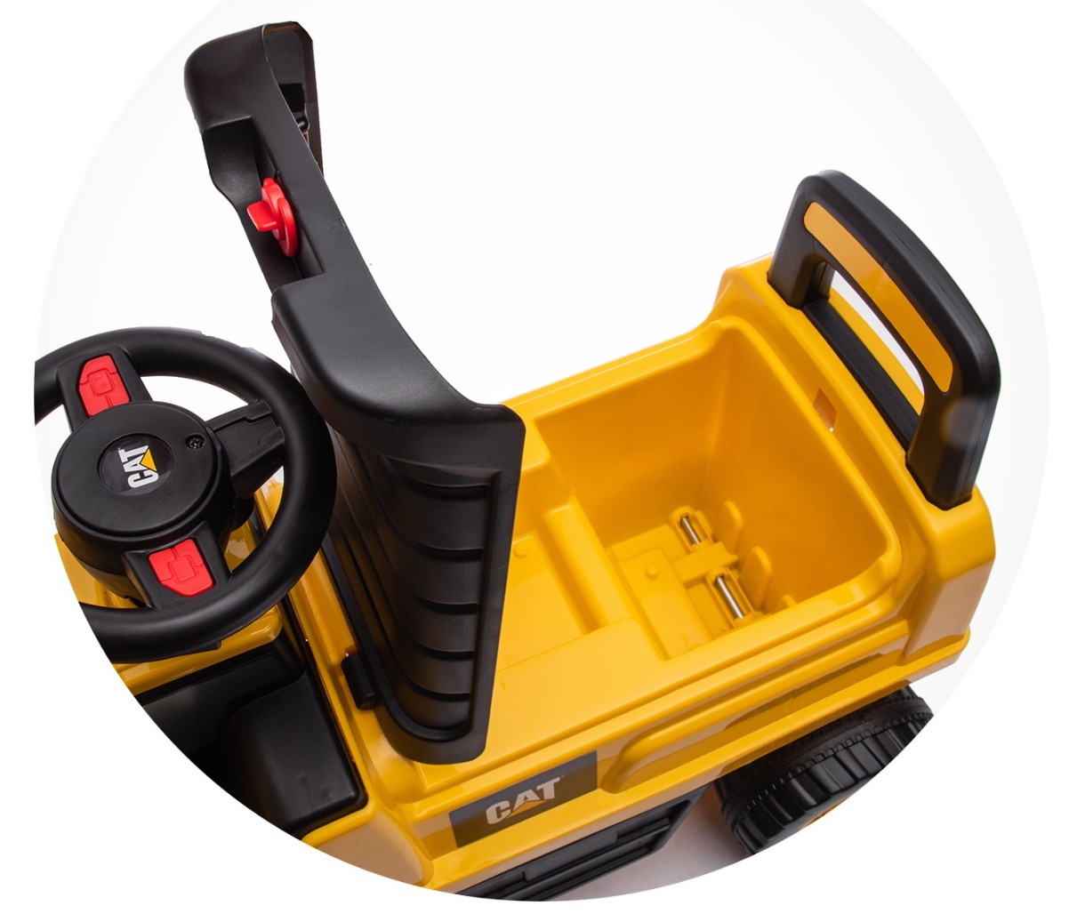 Рулевое колесо свободно вращается и ребенок может совершать легкие маневры.