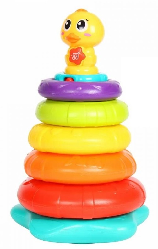 Музыкальная пирамидка Hola Toys Уточка создана для веселой и полезной игры. Состоит из 5 цветных колечек разного диаметра на основе с верхушкой-уточкой. При складывании пирамидки звучат приятные мелодии и звуки, мигают лампочки. Детская пирамидка с музыкой подходит для детей от 6 месяцев, начиная с грудного возраста.