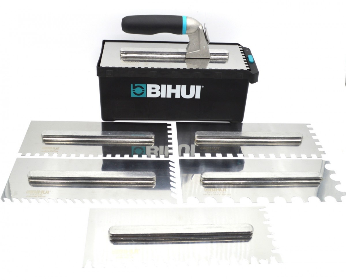 Набор из 6 терок BIHUI - универсальный комплект для плиточника, включающий в себя 6 терок для равномерного нанесения клеевого раствора перед укладкой плитки. Терки - надежные, созданы из износостойкой стали и легко меняются, надежно закрепляясь на ручку. Ручка - широкая, удобно лежит в руке, не скользит. Все терки помещаются в небольшой кейс, что удобно для транспортирования.