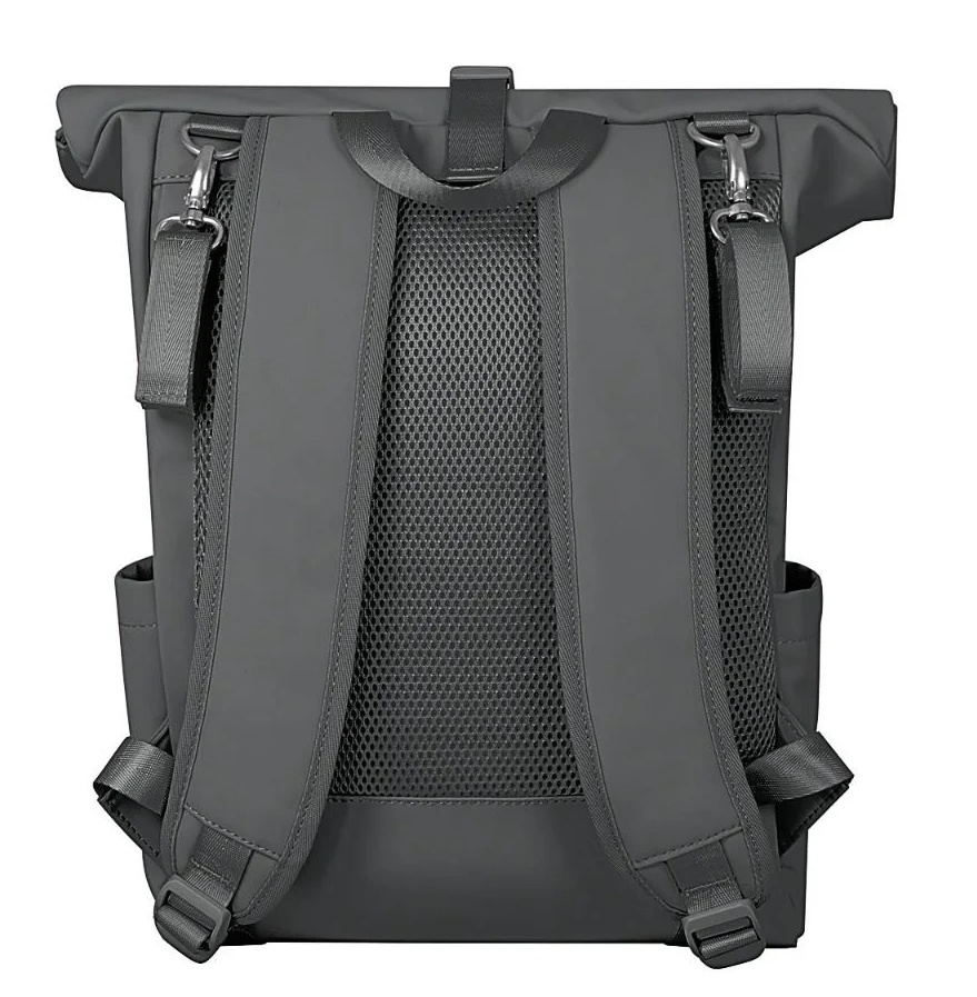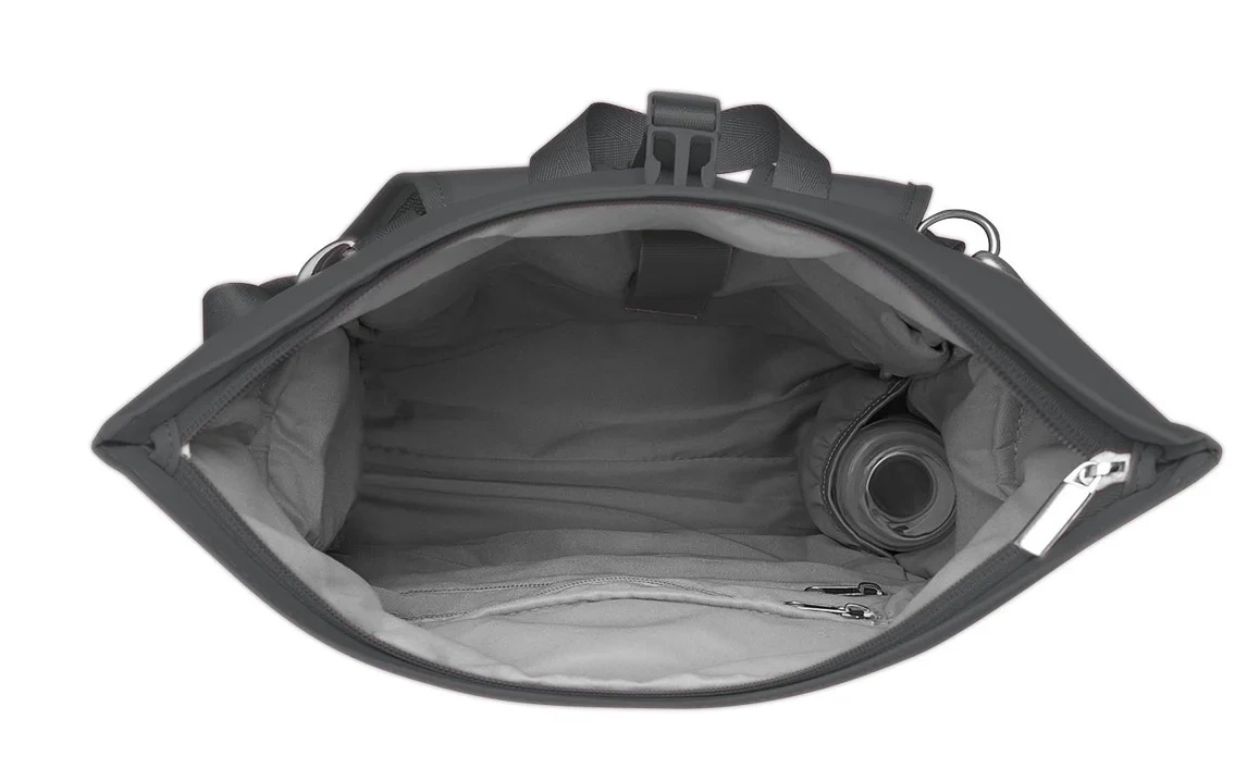 Широкое открытие основного кармана с застежкой-молнией и сворачивающимся верхом с пряжкой.