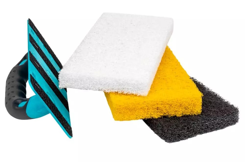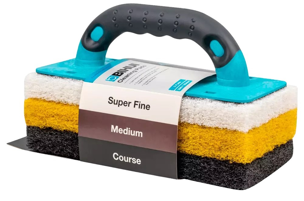 Набор падов с ручкой для очистки плитки BIHUI CSPK4 применяется для очистки плитки после затирки (мытья различных поверхностей). В комплекте 3 губки разной структуры и сменная ручка. Губки крепятся на липучку (как черепашки на основу). С данным набором профессиональные плиточники могут выполнять широчайший спектр работ с любыми типами поверхностей, но особенно работы по очистки после укладки плитки.