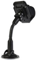 Держатель крепится на поверхность стекла при помощи присоски. Имеет несколько регулировок наклона. Резиновые накладки на прижимах надёжно удерживают устройство от выскальзывания.