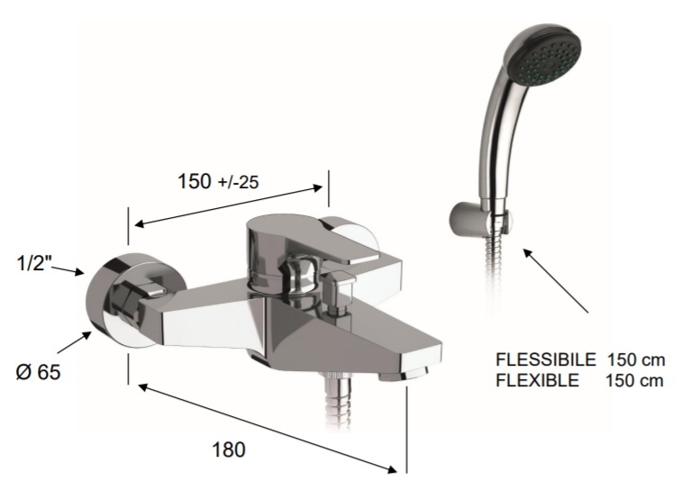 Смеситель для ванны Pentagono Vertice 113CD2000CH1C