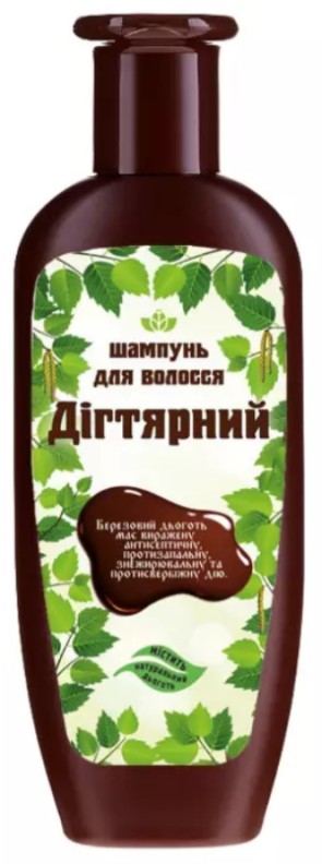 Шампунь для волос Дегтярный. Содержит натуральный березовый деготь. Против перхоти, нормализует работу сальных желез. Обладает антисептическим, обезжиривающим и противозудным действием. Без силиконов, ароматизаторов, парабенов и красителей.