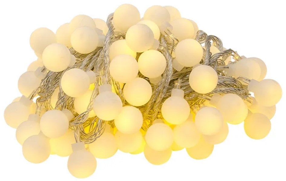 Эстетика: Светодиоды выполнены в форме небольших белых матовых шариков размером 1х1 см, которые равномерно рассеивают мягкий, тёплый свет. Белый цвет корпуса шариков делает гирлянду аккуратной и незаметной в выключенном состоянии.