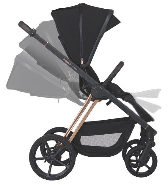 Сиденье можно поставить как по ходу движения, так и лицом к маме. Очень часто дети до года предпочитают смотреть на маму, а став постарше – изучать мир вокруг. Большой капюшон бесшумно регулируется. Откройте дополнительную секцию на молнии и раскройте кап практически до самого бампера. Он отлично защитит юного пассажира коляски Espiro Miloo от ветра и яркого солнца. Для присмотра за малышом сверху расположено большое смотровое окошко. Сзади на спинке спрятался вместительный кармашек – ключи, кошелек или телефон всегда будут у вас под рукой
