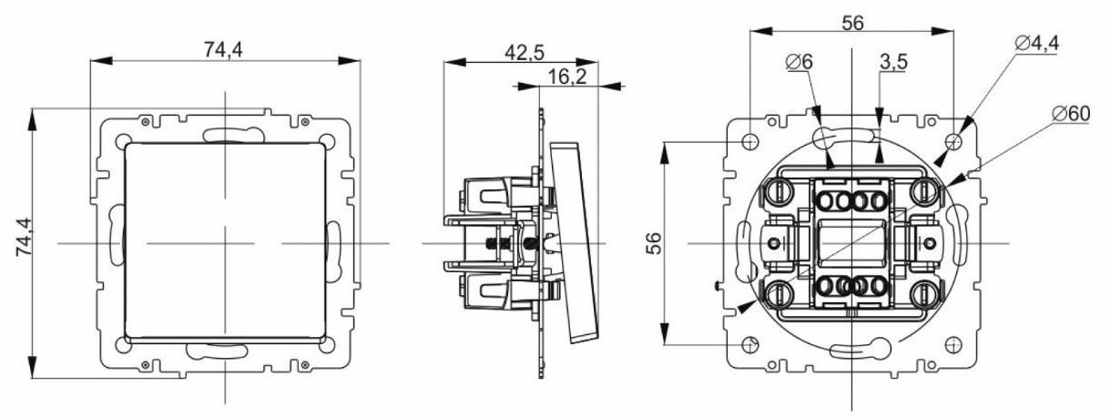 Размер74.4х74.4х42.5 мм