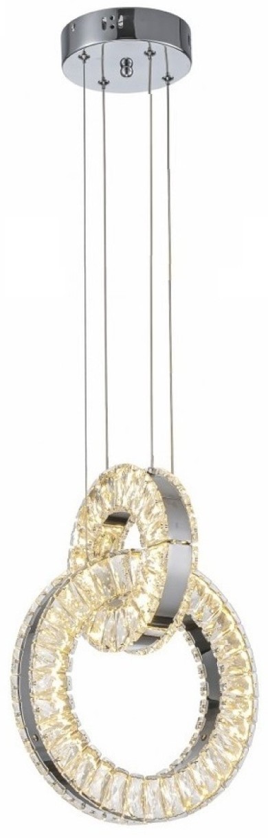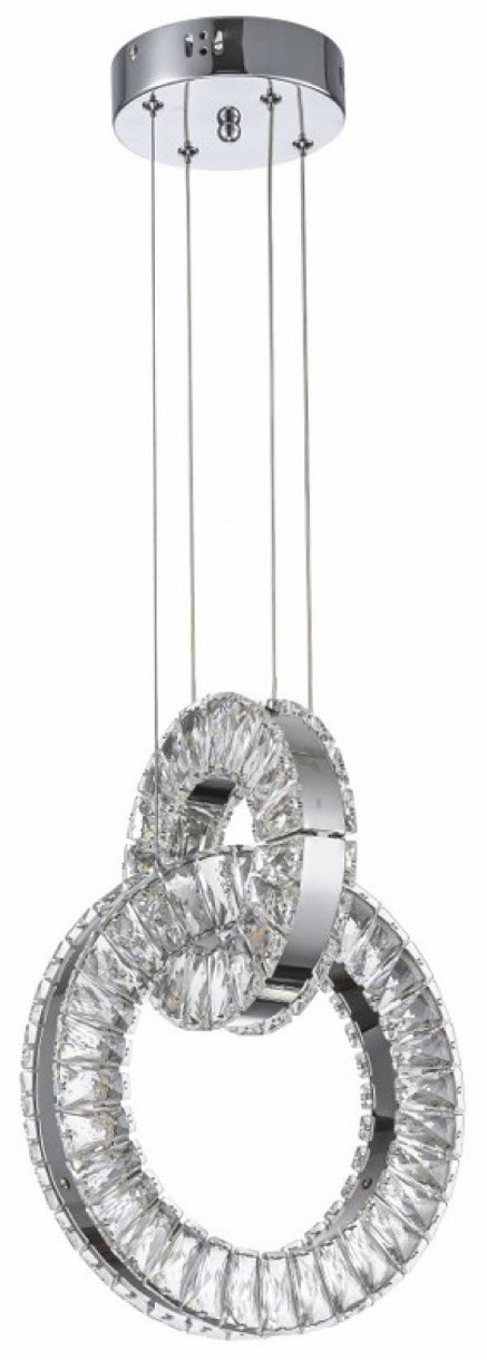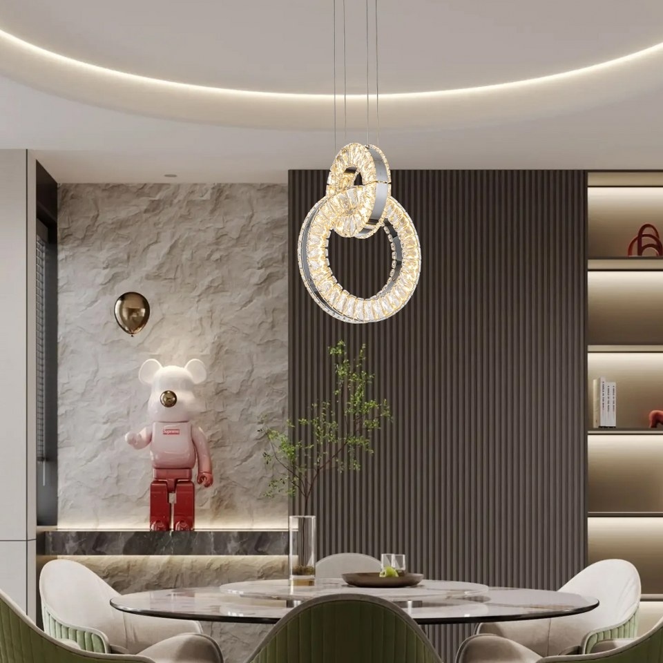 Светодиодный подвесной светильник отличается инновационным дизайном с двумя переплетающимися кольцами, покрытыми гранеными кристаллами, которые эффектно отражают свет. Его хромированная конструкция привносит нотку роскоши и современности и идеально подходит для освещения гостиных, столовых или фойе в авангардном стиле. Встроенное светодиодное освещение не только обеспечивает низкое энергопотребление, но и обеспечивает теплый и уютный свет. Его плавающий и элегантный дизайн превращает любую обстановку в эксклюзивное и изысканное пространство.