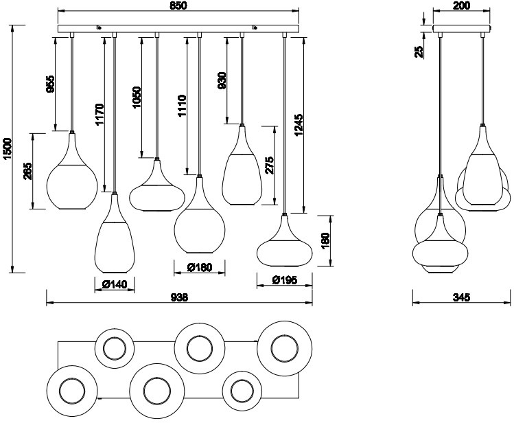 Длина938 мм